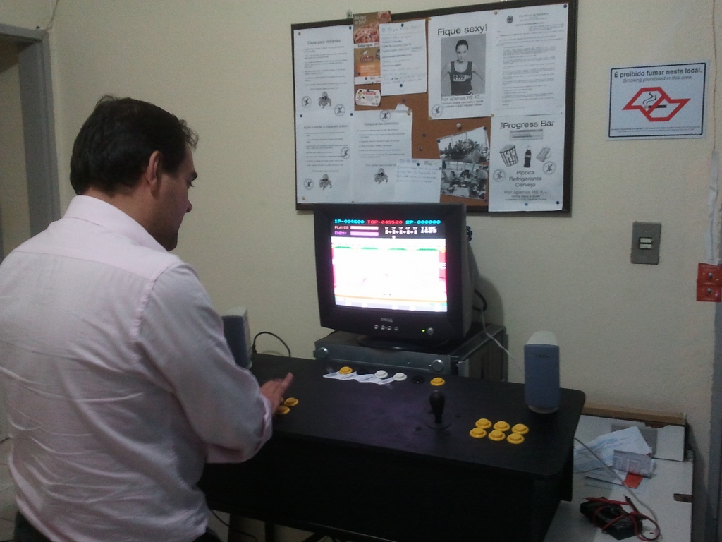 So here is my arcade making its debut at Sabugosa hackerspace: